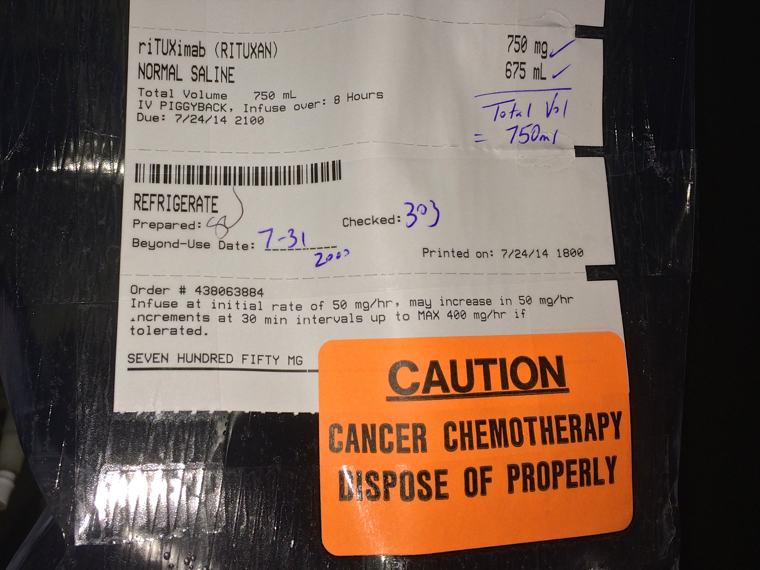 Then the start of chemo. I’m getting drowsy, shut the computer down, turn over to my side, and fall asleep while they begin Rituxan: 750 mg IV. Powerful stuff.