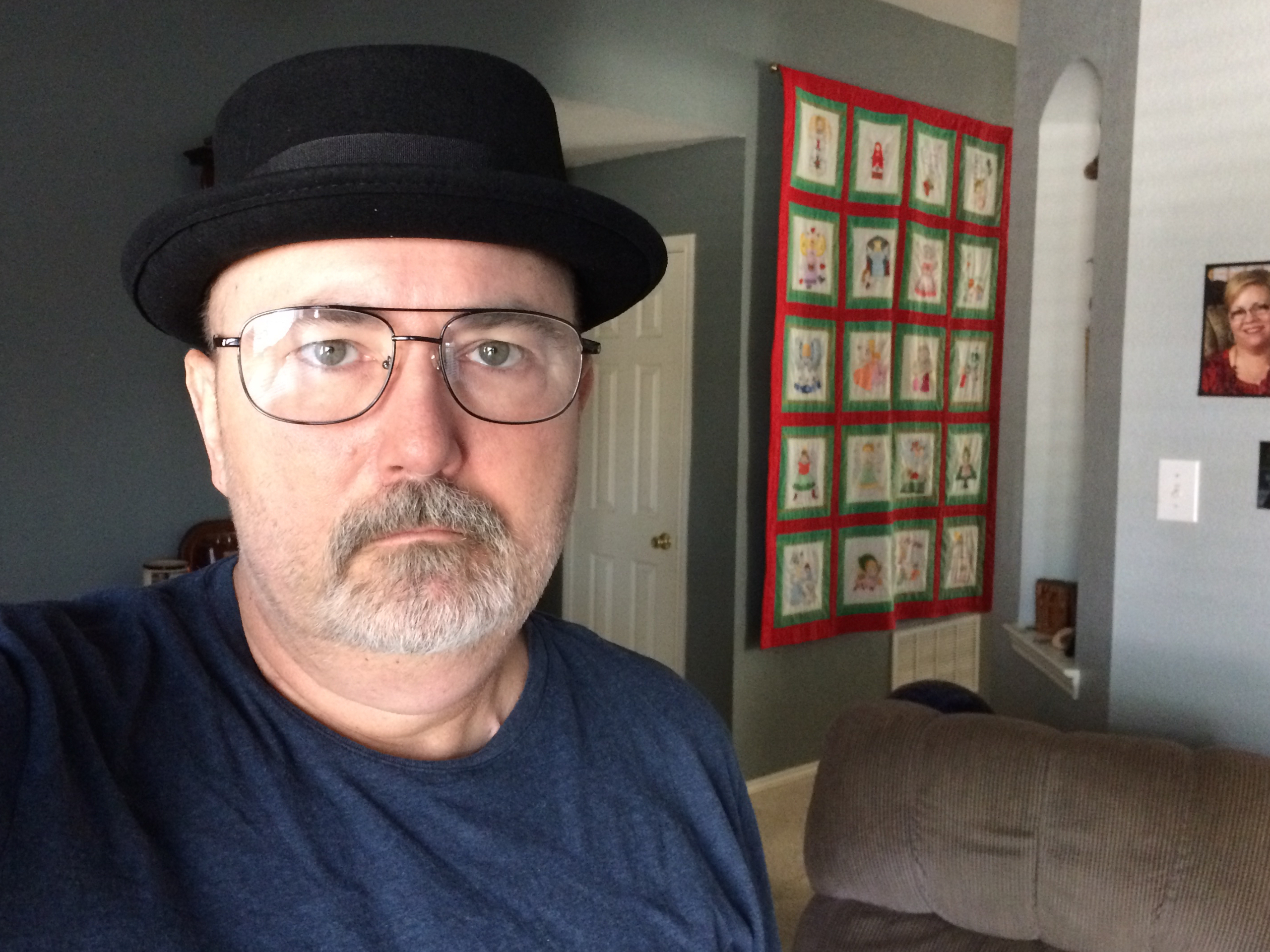 I noticed a little resemblance. Just the image, I’m building no empire thank goodness, too much work and the cost is too high. I ordered a cheesy pork pie wool hat and had glasses that worked. I wanted to make some kind of Breaking Cancer skit, but I’m just not that creative.