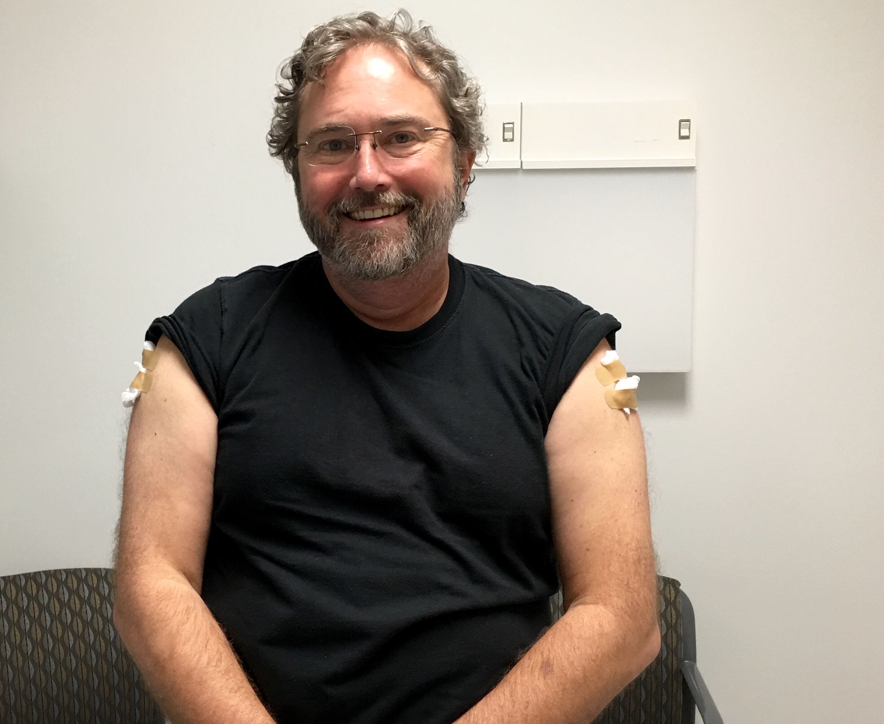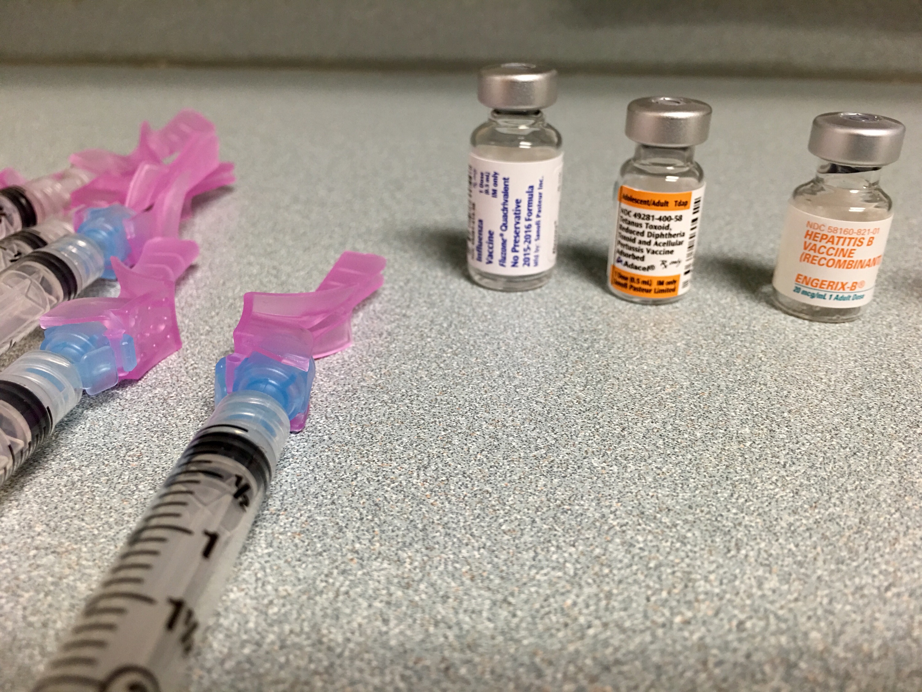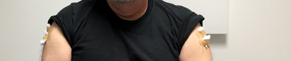They popped me with six injections. I can’t even remember what they all were, but it was stuff like polio, pneumonia, the flu, and tetanus. I forget the other two. She put three injections into each arm. What I found interesting was that she gave one of the injections on the flabby part of my arm on the backside. I haven’t seen injections given there before.