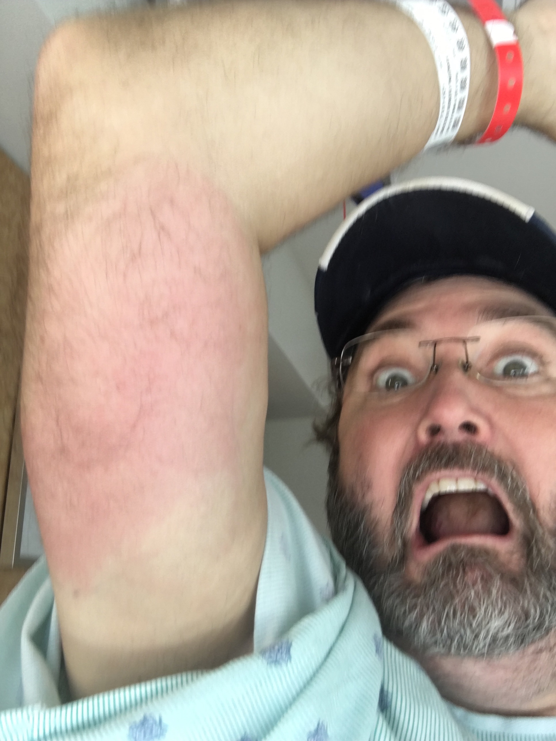 By Thursday morning, I realized something was going to have to change. My fever that morning started at about 100.4 and progressed to 100.8, then increased to 101.8, and then was 102.8. That’s when I told Janice I needed to go to the ER.