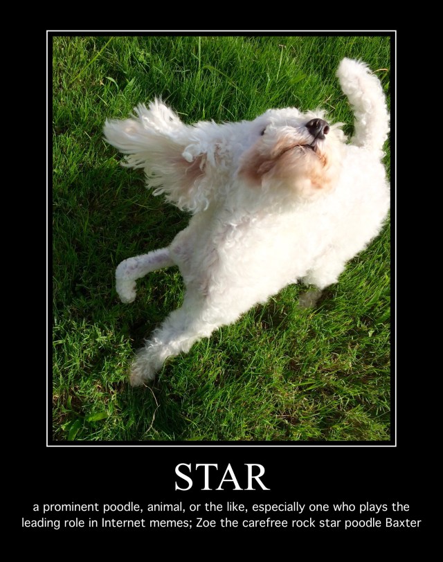 That turned into more silly memes between my daughter and I. This worthless rotten stinking no good for nothing (except love) poodle stole my heart. As a result, I started inundating my daughter, Zoe’s human, with whacky Zoe Memes.