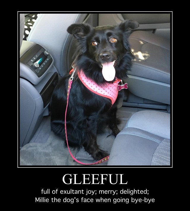 Milly is my oldest daughter and son-in-law’s uber-mutt. She and Zoe are cousins and best friends. That would make Milly my oldest granddogter! This rescue pup is a delight. She is sappy, sweet, happy, and fast.