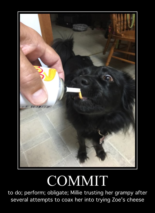 My oldest graddogter, Mrs Milly, certainly counted the cost with her circumspect approach before she demonstrated courage in committing to tasting human food. Her ability to commit, to finally move her nose close enough to the cheese and to open her mouth and actually taste the cheese, was sincerely touching.